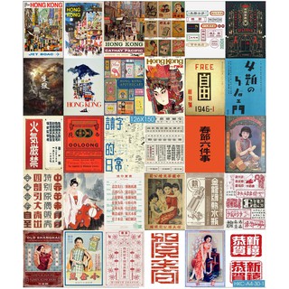 Combo Set 30/50 tờ Decal dán tường trang trí khổ A4,A5 - HongKong- Báo Cũ-Tem Cũ