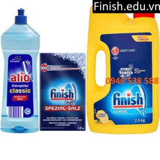 Combo Bột Finish classic 2.5kg + muối rửa bát finish 1.2kg + Nước làm bóng alio 1 lít dùng cho máy rửa bát