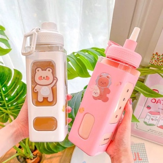 CỐC THUỶ TINH BEAR BRICK kèm ống hút, cốc cafe trà sữa tiện lợi, cốc uống nước nắp gấu hót hít