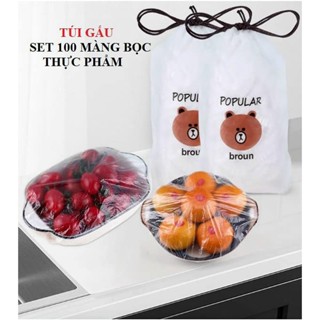 Túi Màng Bọc Thực Phẩm Đồ ăn Hình Gấu TRong Suốt Bo Chun Co giãn Có Thể Sử Dụng Nhiều Lần [ 1Túi = 100 Cái]