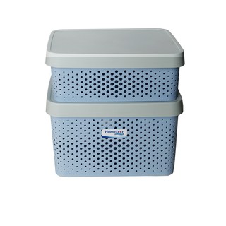 Bộ 2 Hộp Nhựa Đựng Đồ dạng lưới Tiện Dụng Homestar Size L và M Xanh