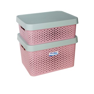Bộ 2 Hộp Nhựa Đựng Đồ dạng lưới Tiện Dụng Homestar Size L và M Hồng
