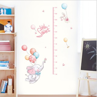 Decal dán tường thước đo chiều cao cho bé yêu Chú voi con bay vui vẻ - decan cao cấp tự dán tại nhà dễ dàng AMYSHOP