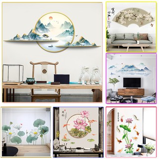 Decal trang trí 3D [GIÁ SĨ] Tranh thủy mặc đẹp, độc đáo, decal dán tường Amyshop có sẵn giao ngay
