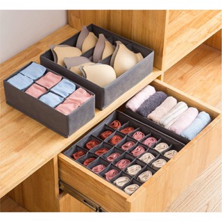 Hộp đựng đồ lót, hộp vải chia ngăn đựng đồ lót màu xám đậm - Khay xếp bảo quản đựng tất vớ sạch sẽ, tiết kiệm diện tích
