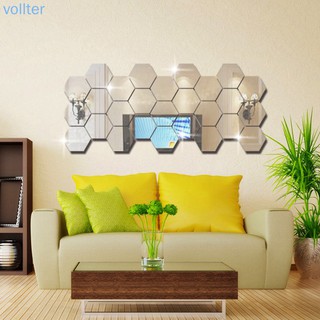 Set 12 miếng gương dán tường hình lục giác 3D dành cho trang trí nội thất