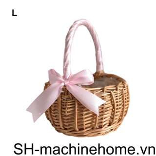 Giỏ Đan Lát Thủ Công Thắt Nơ Có Tay Cầm Đa Năng Trang Trí Tiệc Cưới