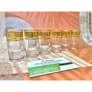 Bộ 6 ly chén uống rượu thủy tinh đế tròn dày khảm họa tiết vàng cao cấp
