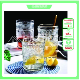 Đồ decor ĐẸP Bộ 6 cốc ly thủy tinh pha lê mạ vàng họa tiết trống đồng chịu nhiệt sang trọng tinh tế - Phong cách Bắc Âu