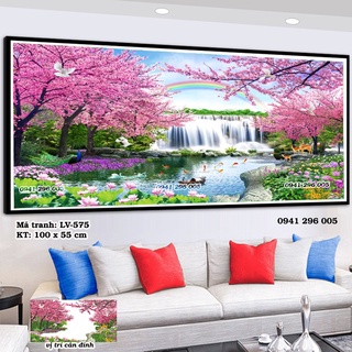Tranh đính đá phong cảnh Mùa Xuân LV575 - Tranh thêu E63 (KT: 100x55cm) - tranh chưa làm