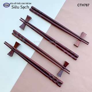 Đũa gỗ Trắc Dành Cho Trẻ Em HAHANCO (1 Đôi) Thân Tròn Đầu Vấu Giúp Tập Gắp - CTH767