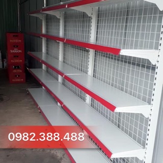 Kệ để hàng siêu thị 2 mặt lưng tôn đục lỗ