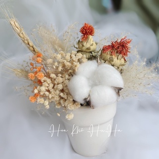 Chậu Hoa Khô Mix Nhiều Loại ( Bông gòn, Baby, tóc tiênn)