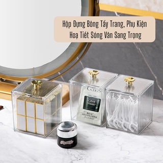 Hộp đựng bông tẩy trang, phụ kiện, đồ trang điểm hộp vuông chất liệu PP cao cấp hoạ tiết sóng vân sang trọng HNTS25