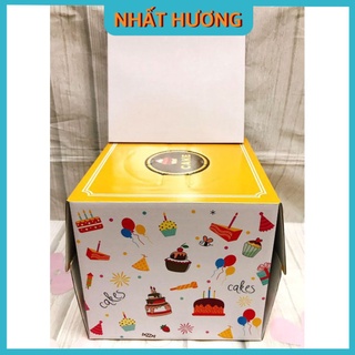 Hộp Đựng Bánh Sinh Nhật Trắng Họa Tiết Kèm Đế Size 16cm x 16cm