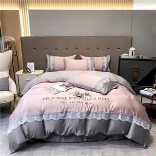 Bộ chăn ga gối lụa ren cao cấp, Chất liệu phi lụa ren phối bắt mắt, thoáng mát không nhăn, miễn phí bo chun ga giường