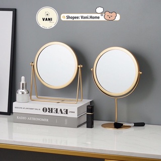 Gương trang điểm để bàn viền mạ vàng xoay 360 độ - Gương soi cao cấp, gương decor để bàn trang điểm mạ vàng sang trọng