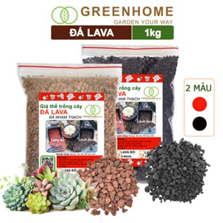 Đá nham thạch lava Greenhome, bao 1kg, màu đỏ, đen, size 3-6mm, sạch bụi, cho thủy sinh, bonsai, xương rồng