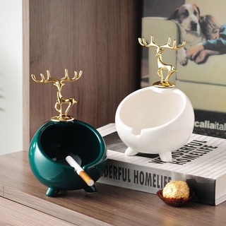 Gạt Tàn Thuốc Sứ màu xanh đậm Hươu Vàng sang trọng