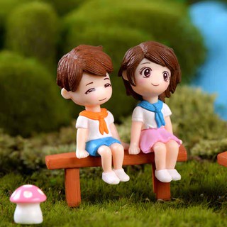 Phụ kiện tiểu cảnh cặp đôi học sinh ngồi ghế (KÈM GHẾ) trang trí terrarium, sen đá, charm slime, mô hình tre