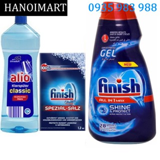 Combo Nước rửa chén Finish 650ml + muối rửa bát finish 1.2kg + Nước làm bóng alio 1 lít dùng cho máy rửa bát