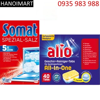 Combo 40 viên rửa bát Alio + muối rửa bát somat 1.5kg dùng cho máy rửa bát