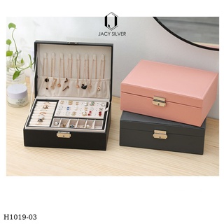 Hộp đựng trang sức 2 tầng bằng da có khóa, hộp đựng vòng cổ, nhẫn, vòng tay gọn gàng H1019
