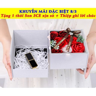 Hộp Quà Tặng Bạn Gái 8-3 Hoa Hồng Sáp Thơm + kèm 1 Thỏi Son 3CExịn sò sang chảnh cùng Thiệp lời chúc