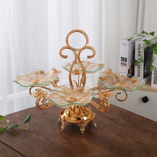 Khay đựng bánh kẹo hoa quả 4 đĩa khung kim loại đĩa thuye tinh trang trí Huydecor