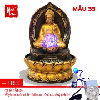 Thác nước phong thuỷ để bàn đức phật thích ca mâu ni toạ thiền phật tổ tịnh thiền (tặng máy bơm quả cầu)
