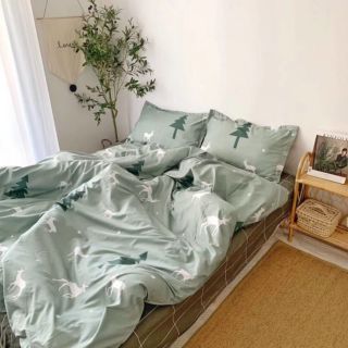 Bộ chăn ga gối phong cách Hàn quốc cotton poly Cây Thông Đen