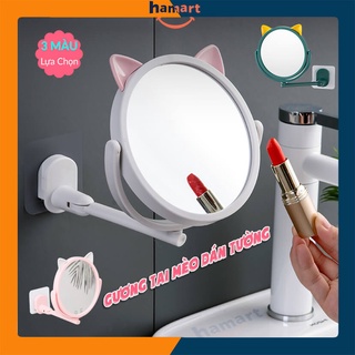 Gương Trang Điểm Treo Tường Tai Mèo Hamart Gương Tròn Mini Dán Tường Nhà Tắm Xoay 360°