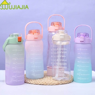 Bình uống nước JUJIAJIA bằng nhựa dung tích lớn 1500ml chống rơi màu gradient có nhãn dán