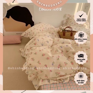 Cotton Bộ Vỏ Chăn Ga Cotton Bèo Hoa Nhí_shinbedding