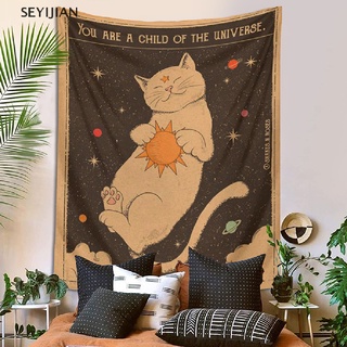 Thảm treo tường trang trí họa tiết mèo phong cách bohemia