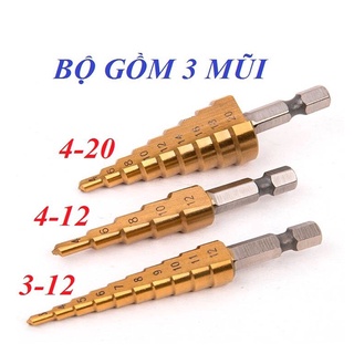 Bộ 3 mũi khoan tháp tầng bước [ BH - 12 Tháng] titanium 4-32mm khoan sắt , tôn,..đa năng
