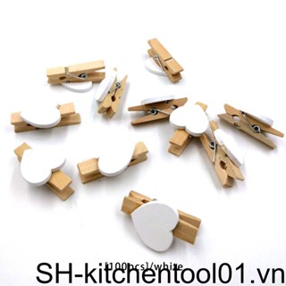 Set 100 Kẹp Gỗ Hình Trái Tim Trang Trí Ảnh / Kẹp Ảnh / Đồ Ăn Vặt Phong Cách Lãng Mạn Cho Năm Mới / Tiệc Cưới