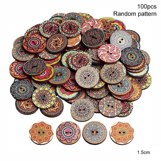 100 Nút Gỗ Tròn 15mm In Hình Hoa Phong Cách Retro Độc Đáo