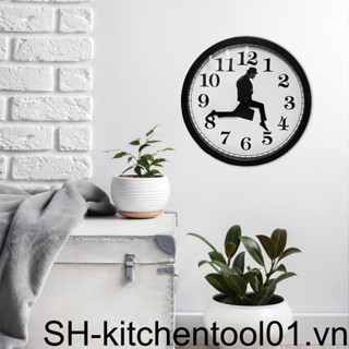 Đồng Hồ Treo Tường Không Ồn Màu Trắng / Đen Họa Tiết Đi Bộ Ngộ Nghĩnh
