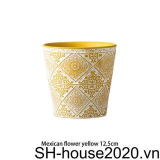 Chậu Hoa Sứ Hình Tròn Họa Tiết Dập Nổi Có Lỗ Thoát Nước Tiện Dụng Trang Trí Nhà Cửa / Văn Phòng