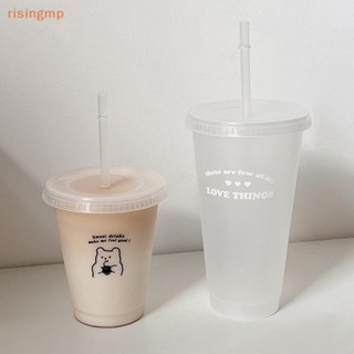 Bình Nước Nhựa Có Nắp Kèm Ống Hút Họa Tiết Dễ Thương
