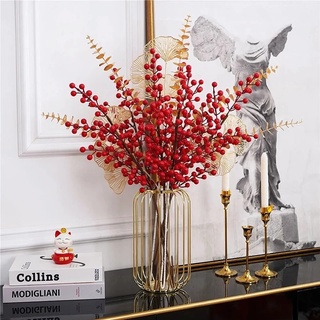 1 Nhánh cây mọng đỏ 3/4 nhân tạo bằng nhựa trang trí nhà cửa/tiệc cưới/năm mới