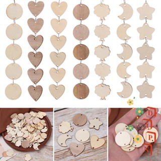 Set 50 Miếng Gỗ Hình Tròn / Ngôi Sao / Trái Tim / Hình Trái Tim Có Lỗ Kẹp Vòng Nhẫn