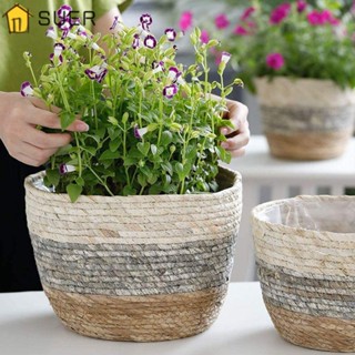 SUENIN Chậu Trồng Cây Bằng Sợi Mây Đan Hình Tròn Độc Đáo Trang Trí Nhà Cửa