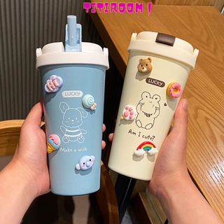 Ly Cốc giữ nhiệt bằng thép không gỉ Miniso inox 304 dung tích 500ml có ống hút dễ thương cute tặng kèm sticker + dây đeo JP5