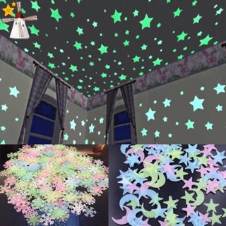 100 Miếng Dán Tường Dạ Quang 3d Hình Ngôi Sao Trang Trí Phòng Ngủ / Phòng Trẻ Em JP6