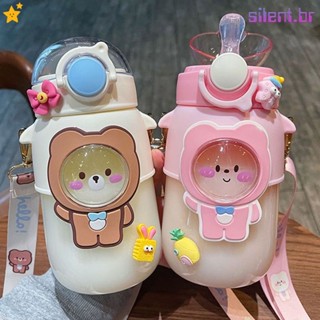 Bình Nước Thể Thao Bằng Nhựa Chống Rò Rỉ Có Ống Hút Họa Tiết Hoạt Hình Dễ Thương DGE JP6