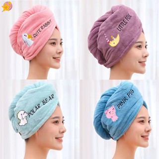 Khăn Quấn Tóc Dày Dặn Thấm Hút Nước Nhanh Khô Thêu Hình Động Vật Dễ Thương Cho Nữ
