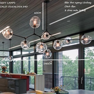 ĐÈN THẢ BÀN ĂN - ĐÈN THẢ PHÒNG KHÁCH LINDSEY THẢ NGANG_CÀNH ĐEN_8 CHAO THỦY TINH TRẮNG
