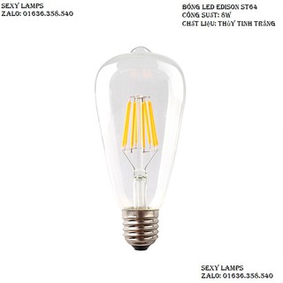 (ST64_8W_TTT) BÓNG LED EDISON THỦY TINH ST64 8W THỦY TINH TRẮNG